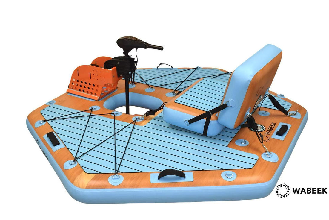 Set sail in style with the innovative Inflatable Hexagon shaped Mini Electric Boat, designed for smooth, serene water experiences. Crafted from military-grade drop-stitch materials, this boat offers superior durability, rigidity, and safety. Its unique hexagonal design maximizes space, providing ample room for passengers while maintaining compact efficiency.